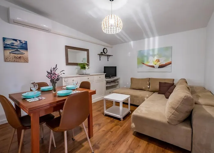 The 42 m^2 Apartment Vedrana 2142 offers proximity to a number of tourist attractions, such as Kazun Park, located approximately 10 minutes' drive away. At this 1-bedroom apartment, Wi-Fi and a free private car park are also provided.